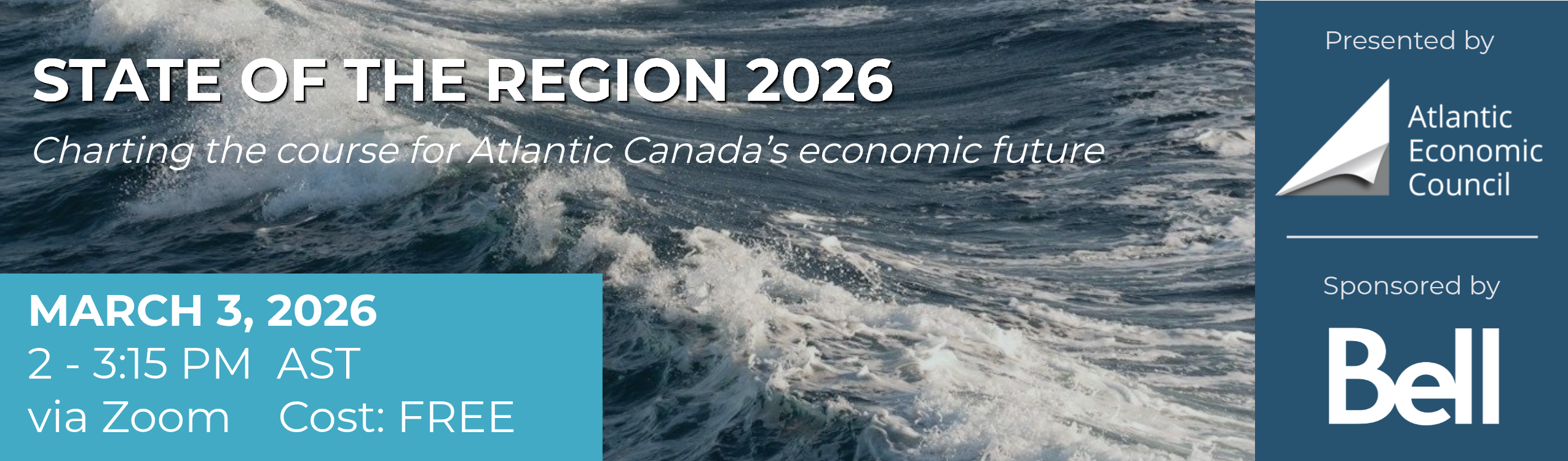 March 3, 2026 The Council's annual State of the Region webinar is an exclusive session offering a clear perspective on Atlantic Canada’s economy. Hosted by Council president & CEO, David Chaundy, this is a must-attend event for senior government leaders, policymakers and business executives in Atlantic Canada and beyond, with the latest data and economic insights that can help inform your policy, planning and investments. Gain actionable understanding of: